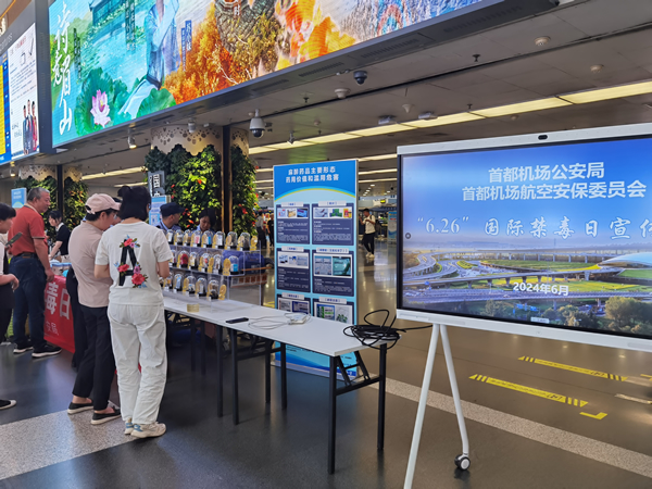 為積極踐行“平安中國”建設理念,扎實開展首都機場“平安民航”建設,按照民航局、首都機場集團相關工作部署,近日,首都機場在2號、3號航站樓組織開展了國際禁毒日宣傳活動。本次活動由首都機場公安局主辦、首都機場航空安保委員會協辦。在活動中,公安青年民警與首都機場股份公司青年志愿者成立了聯合宣講隊,通過知識講解、樣品展示、宣傳冊發放、互動問答等多種形式,面向在首都機場出行的旅客和現場員工,全方位、深層次地普及禁毒知識,有效提高了廣大旅客和員工的識毒、防毒、拒毒能力,營造了“健康人生、無毒空港”的良好氛圍。(房志華 李郝攝影報道)