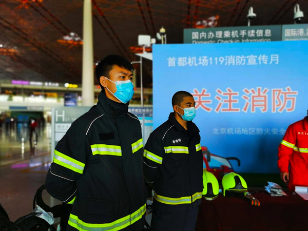 此次活動緊扣主題,通過消防戰(zhàn)斗服穿戴體驗、消防器材展示等項目,讓旅客和首都機場各駐場單位員工關注消防,了解消防?,F(xiàn)場通過滅火器滅火體驗、救援結繩體驗等活動,讓參與者學會自救。在現(xiàn)場發(fā)放的宣傳卡片上,不僅印有識別消防隱患的知識,也展現(xiàn)了首都機場消防戰(zhàn)斗員訓練、演練的別樣風采。