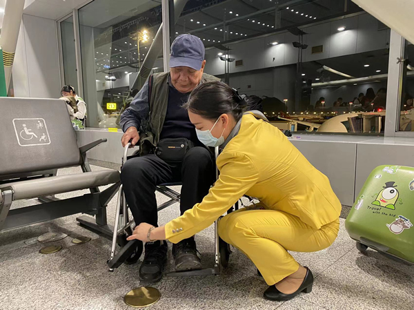 同時,首都機場還針對老年群體推出了“鄉音隨行”特色服務。首都機場暖陽團隊在接到老年旅客“愛心陪伴服務”的預訂信息后,主動聯系旅客確認航班信息、接駁地點、服務需求等內容,并可根據旅客始發地或目的地信息,為旅客在值機、安檢、登機等重要環節提供方言服務。