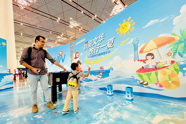 7月30日,首都機場在3號航站樓開展了“首覽文華?悅行一夏”暑期嘉年華服務文化活動,通過開展以旅客服務產品為主題的文化活動,弘揚和傳播中華優秀傳統文化,提升旅客出行體驗。此次活動結合巴黎奧運會、跨境旅游等元素提升旅客出行體驗。旅客只需要打開微信掃一掃首都機場小程序二維碼,注冊成為會員,即可參與任意互動體驗,并有機會獲得首都機場精美文創禮品。旅客在參與多種文體互動項目的同時,還可以與首都機場服務產品形象IP“都都”進行互動。持續兩天的活動現場氣氛熱烈,旅客積極參與各項文體活動,感受到了運動的快樂和文化的魅力。(徐揚攝影報道)