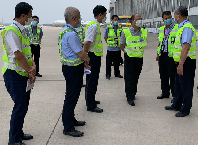 7月2日下午,集團公司副總經(jīng)理、股份公司總經(jīng)理韓志亮,集團公司副總經(jīng)理郟建青,股份公司副總經(jīng)理王蔚玉一行,現(xiàn)場督導空防安全問題整改工作。