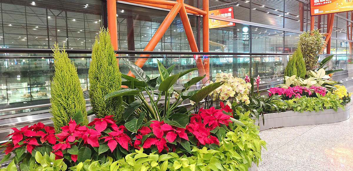 據(jù)悉,此次景觀更新共計(jì)完成花卉更換560余盆,2號(hào)航站樓的S景觀、3號(hào)航站樓的步道S景觀、九龍壁和夢(mèng)想種植園等區(qū)域煥然一新。3號(hào)航站樓E區(qū)也迎來(lái)華麗變身,大水法景觀通過(guò)綠植與花卉的重新組合,收到了疏密有致的視覺(jué)效果;皇家園林景觀內(nèi)新增“國(guó)寶熊貓”和仿真置石,趣味盎然;蘇州園林景觀則以石斛蘭、一品粉等花卉與太湖石小品相映襯,展現(xiàn)江南水鄉(xiāng)韻味。