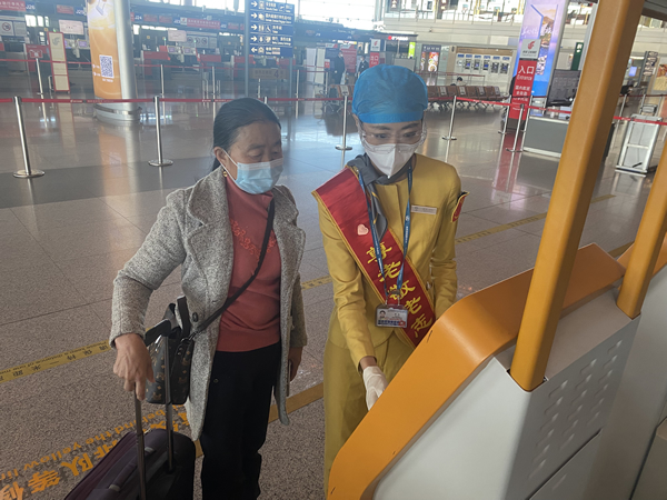 現在,首都機場暖陽團隊在接到老年旅客“愛心陪伴服務”的預定信息后,會主動聯系旅客確認航班信息、接駁地點、服務需求等內容,并根據旅客始發地或目的地信息,結合現場資源,詢問旅客是否需要方言服務,從而按需求在值機、安檢、登機等環節用“鄉音”進行注意事項及相關政策的提示。使用“鄉音”溝通不僅方便老年旅客更加快速理解服務及提示內容,還能讓老年旅客在出行過程中更有親切感。