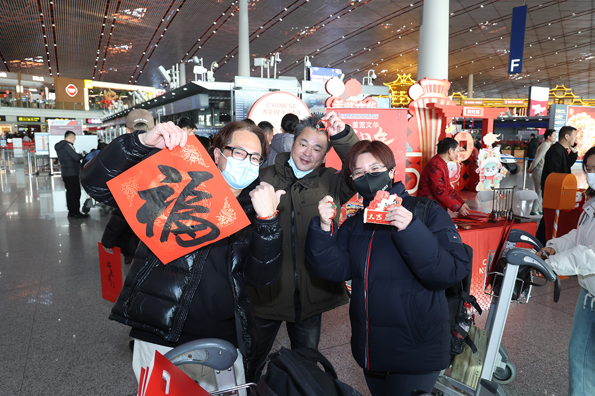 本次活動設(shè)置了豐富的中華傳統(tǒng)非遺文化現(xiàn)場互動體驗和線上抽獎環(huán)節(jié)。同時,為持續(xù)做好一體化服務(wù)平臺線下營銷宣傳,提升旅客對服務(wù)品牌的認(rèn)知度,在現(xiàn)場活動中,首都機(jī)場服務(wù)品牌IP“都都”與旅客開展互動,通過現(xiàn)場掃碼參加有獎游戲的形式,向廣大旅客發(fā)放周邊文創(chuàng)產(chǎn)品,在熱鬧溫馨的氣氛中歡歡喜喜過新年。
