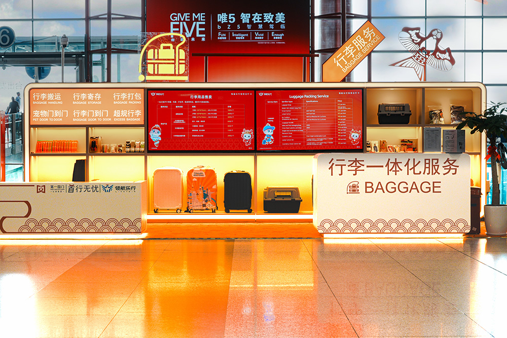 為助力更多旅客“徒手出行”,首都機場創新行李服務模式,于近期推出“首行無憂·行李一體化”服務產品?,F在,首都機場航站樓內設置有7處服務柜臺,均可一站式辦理行李打包、行李寄存、行李搬運、行李“門到門”,更支持寵物“門到門”、大件行李運送等特色服務。