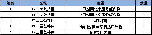 首都機場計劃在T2、T3重要區域及重要通道新增自助柜員機(ATM)(以下簡稱“ATM”)設備,資源點位如下: